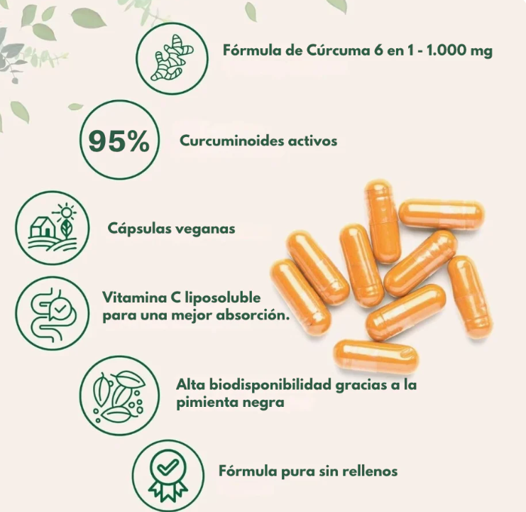 ✨ 🌿 Actúa desde la raíz – Los curcuminoides trabajan directo en los focos de inflamación crónica 🦠, apoyando tu salud a nivel celular.